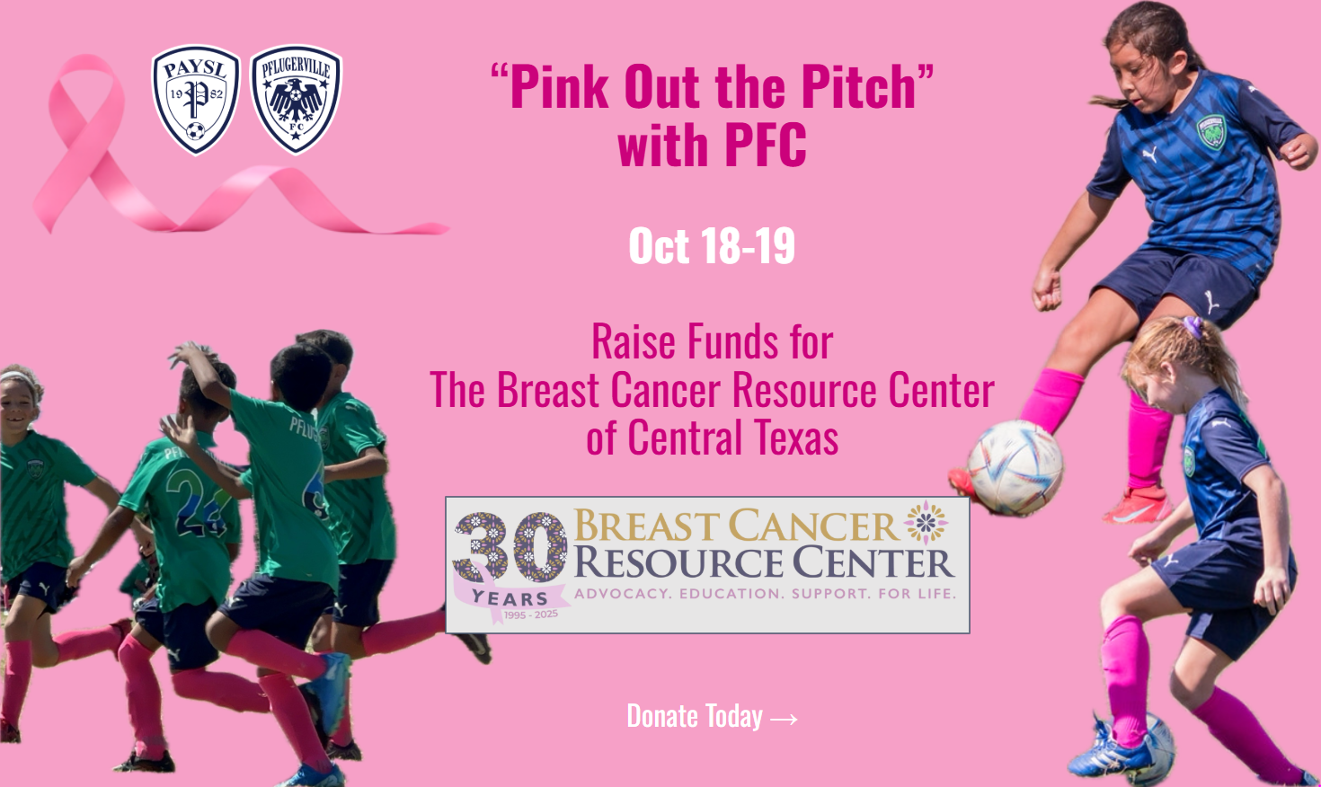 Additionally, Pflugerville FC has also set up a fundraiser with The Breast Cancer Resource Center of Central Texas. If you would like, parents, players, and teams can donate directly to their program.