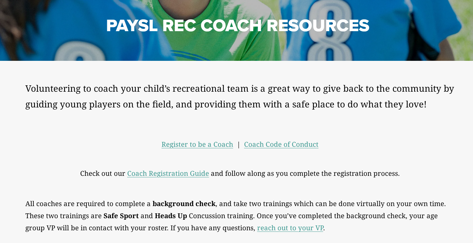 On the PAYSL website, go to the appropriate “resources” page. There are separate Codes of Conduct and registration links for Coaches and Managers so make sure you go to the correct one.
